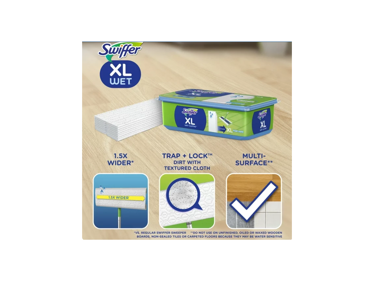 1.5X larger than regular Swiffer Wet mopping cloths