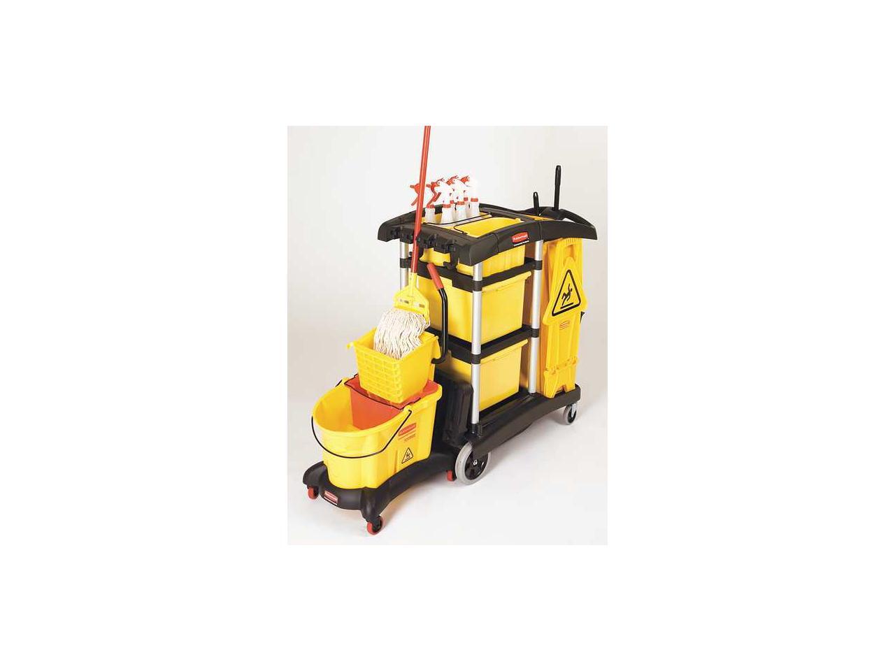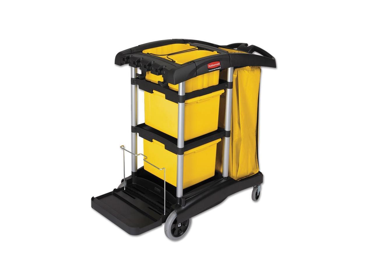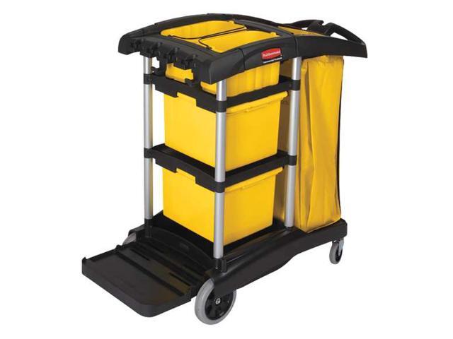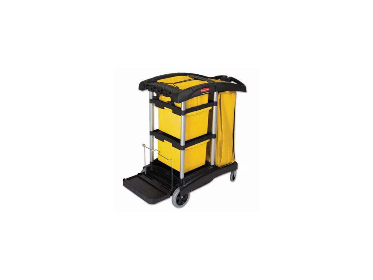 RUBBERMAID FG9T7300BLA Microfiber Janitor Cart,Black,Plstc/Alum