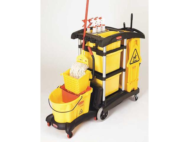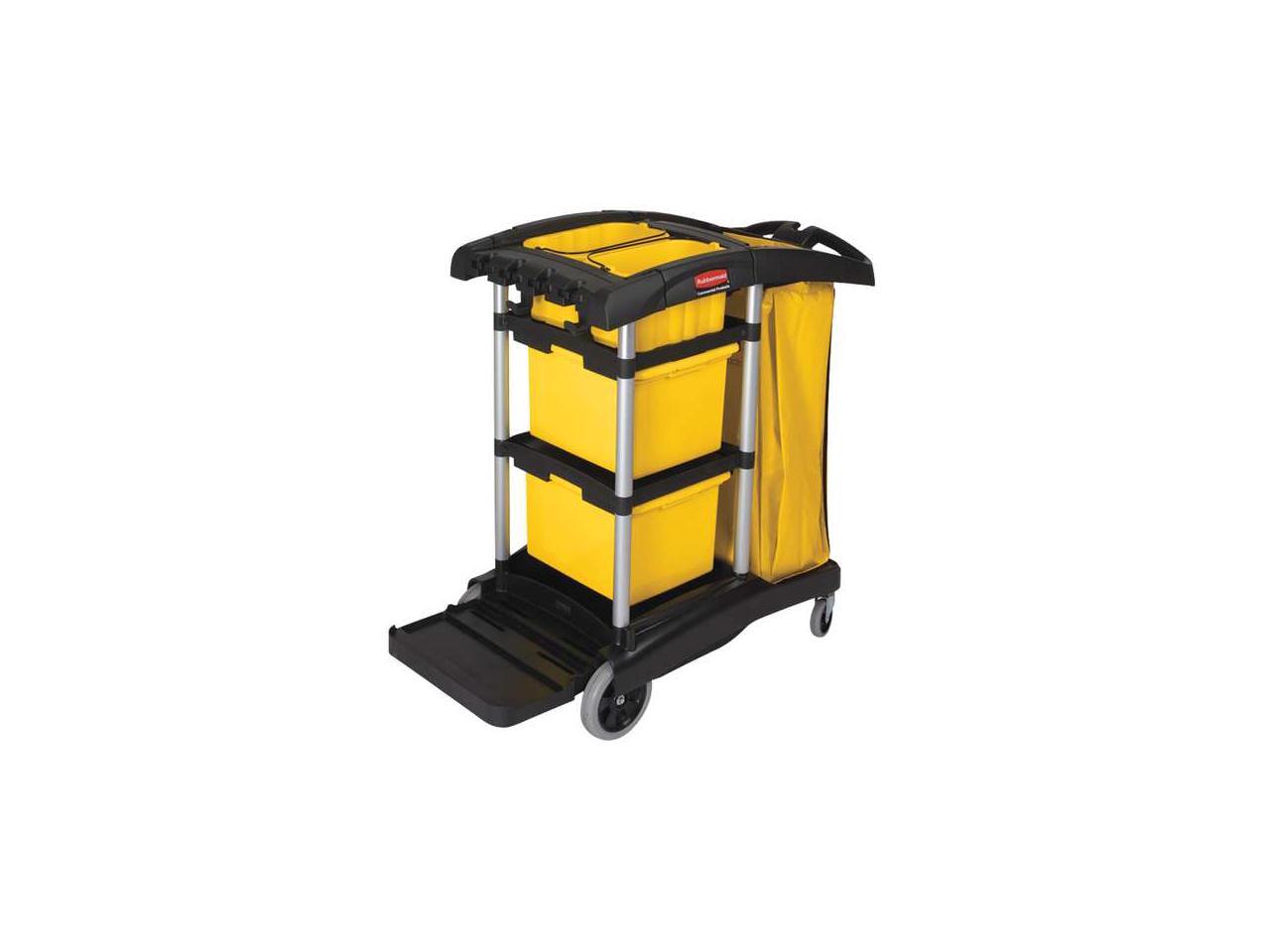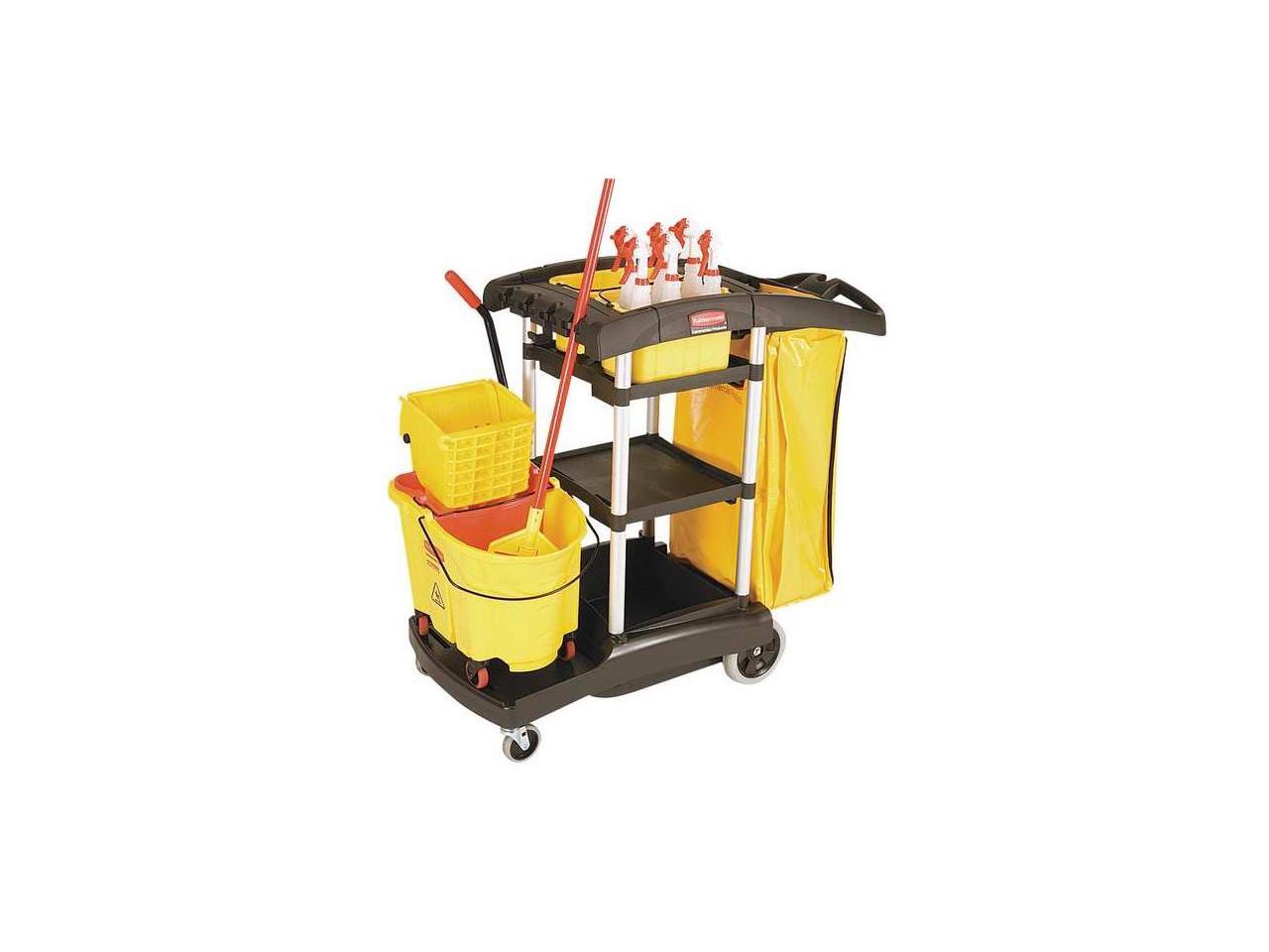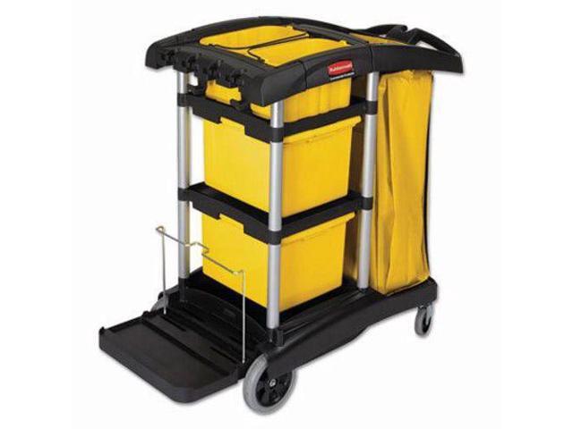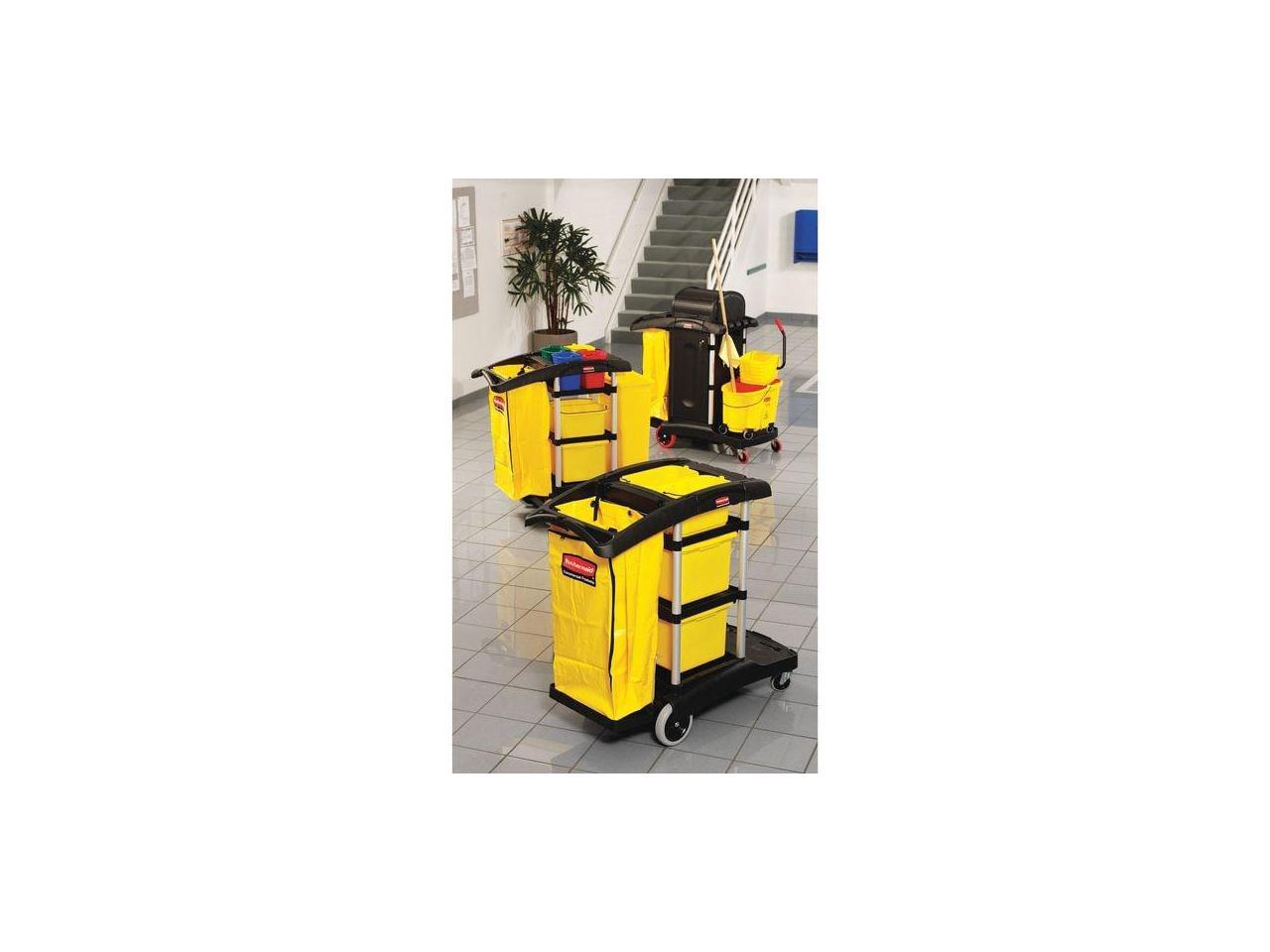RUBBERMAID FG9T7300BLA Microfiber Janitor Cart,Black,Plstc/Alum