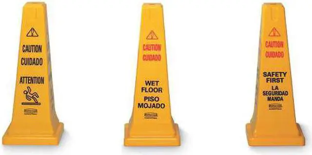 Safety Cone, Number of Printed Sides 4, Printed Language English, French, Spanish, Sign Header Caution, Sign Legend Caution Wet Floor, Mirror Print No. This item has been restricted from sale in the following state (s): []