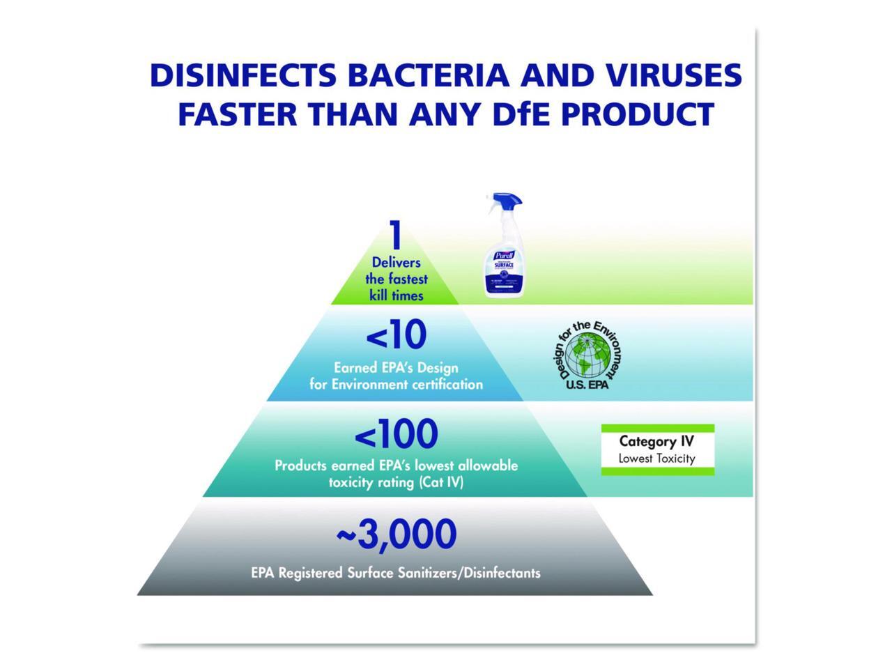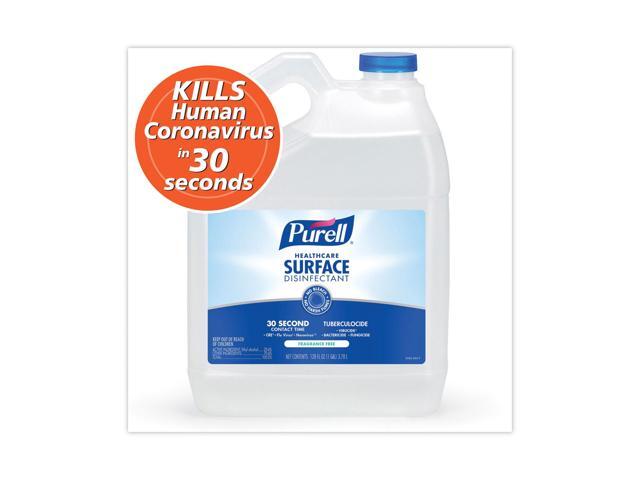 - Wipes out 99.9% of viruses and bacteria fast, including staph, norovirus, MRSA, VRE, and , in just 30 seconds. Total disinfection time of two minutes. Case includes: 1 1 Gallon Surface Disinfectant Pour Bottle Refills (Use gallon bottles to refill 32 fl ounce bottles; SKU 3340-06 sold separately).