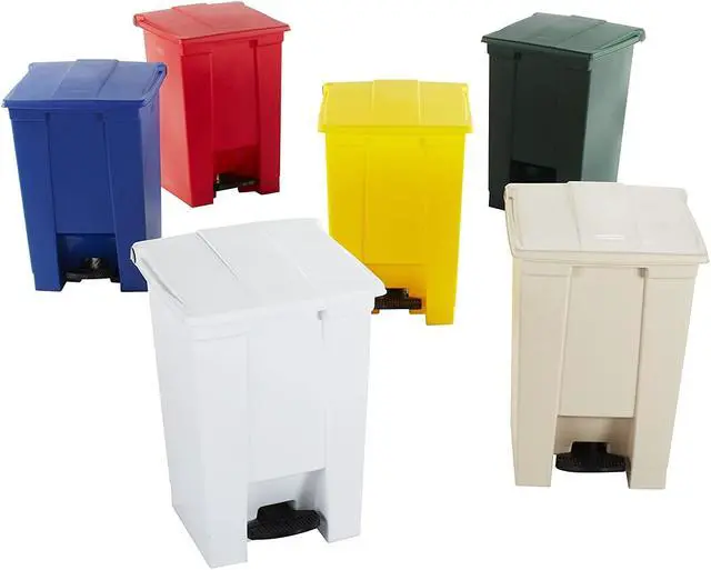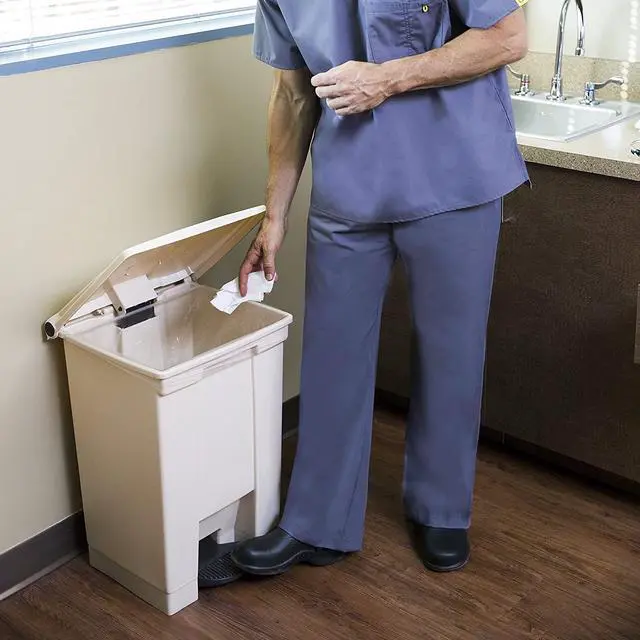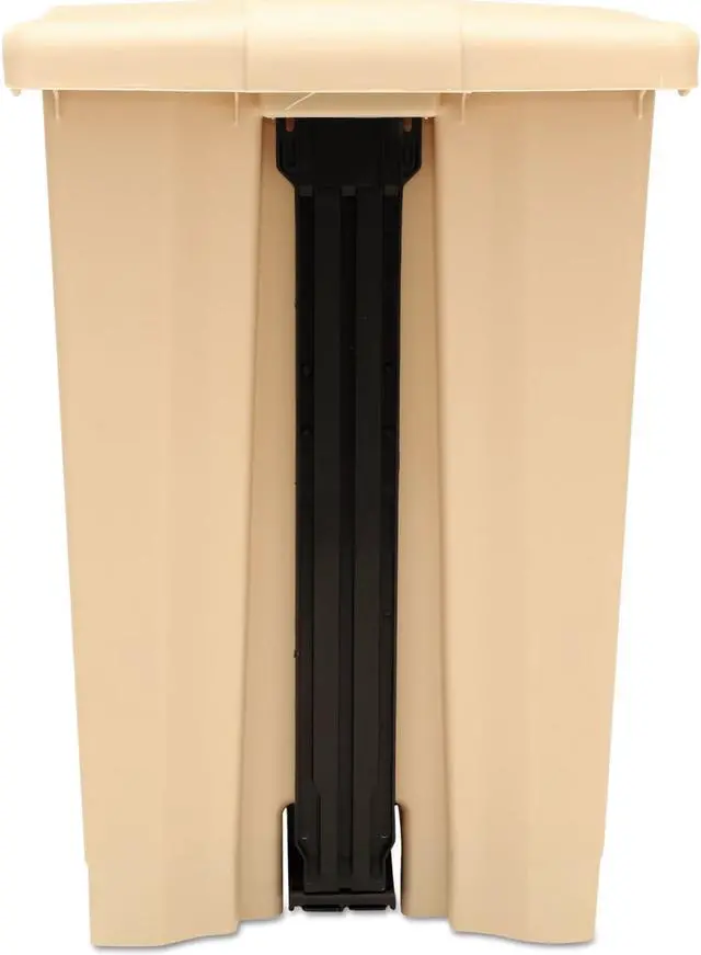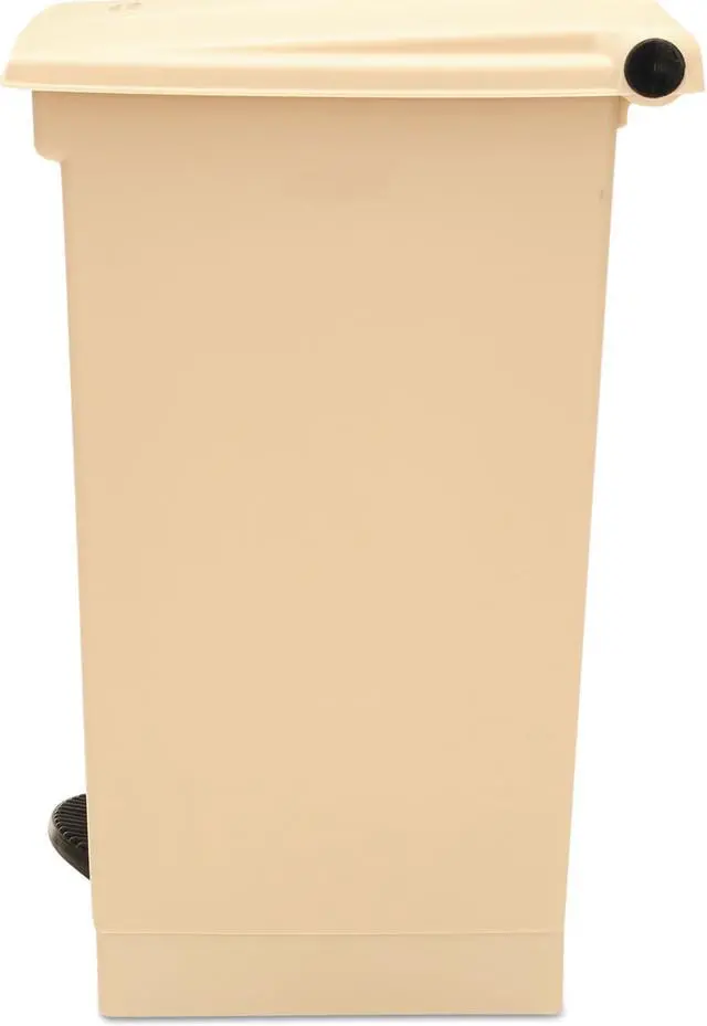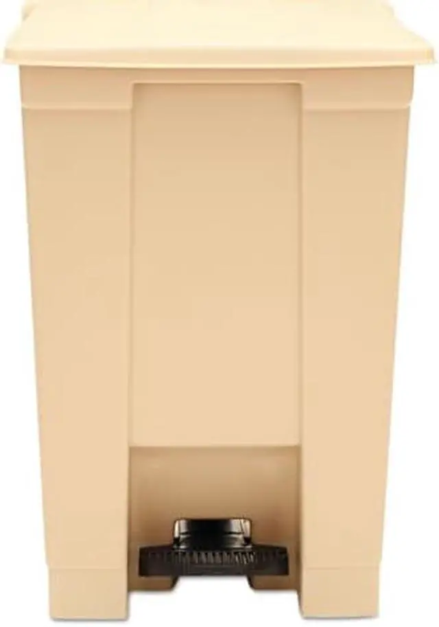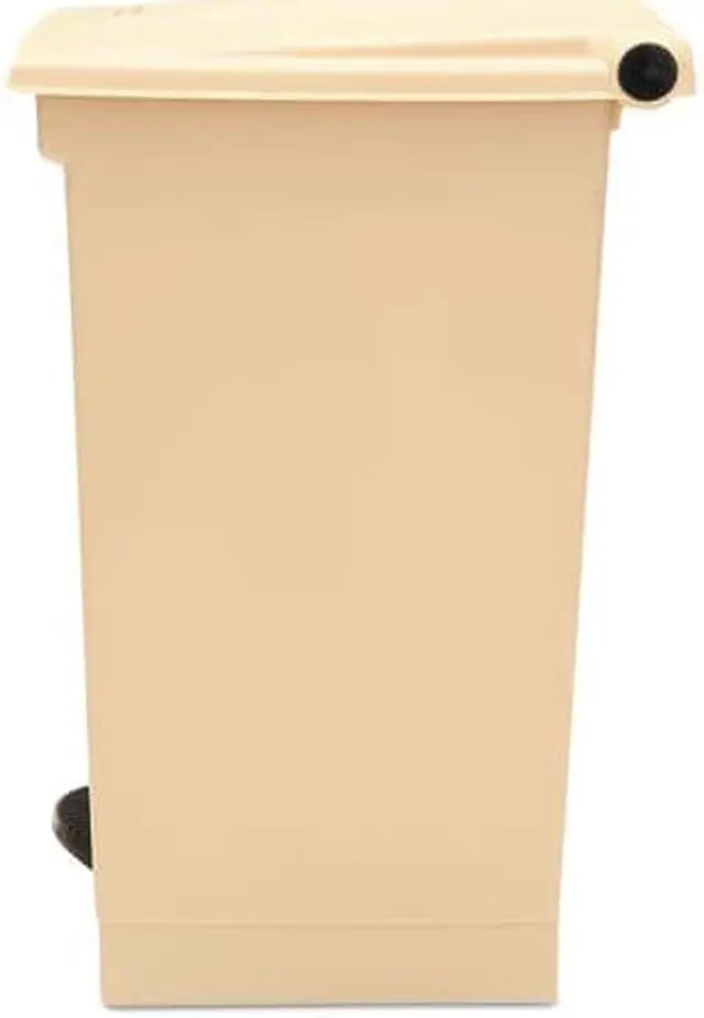 Rubbermaid Commercial Step-on Waste Container - 12 gal Capacity - 17.1" Height x 15.8" Width x 16.3" Depth - Plastic - Beige Step-on Container features a tight-fitting, overlapping lid to contain odors and is approved for fire safety. Slow-close, integrated lid damper helps keep odors and bacteria from escaping. All-plastic construction is tough and puncture-resistant. Heavy-duty pedal controls entry and delivers hands-free sanitary use. Factory Mutual (FM) approved step-on container assists in complying with OSHA regulation; 29 CFR 1910.1030 Occupational Exposure to Bloodborne Pathogens. Capacity is 12 gallons.