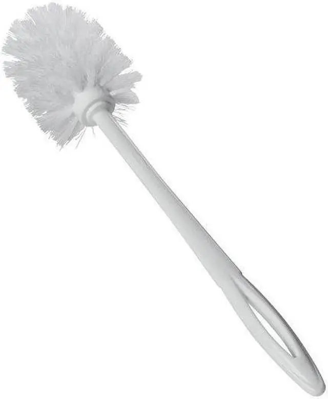 The Rubbermaid Commercial Products Toilet Brush with Plastic Handle is ideal for commercial, medical, and industrial applications. The sturdy plastic toilet bowl brush handle is suited for moderate to heavy cleaning. A hole near the end of the toilet brush handle allows the toilet cleaning brush to be hung for storage. The white polypropylene bristles are resistant to stains, odors, bacteria, fungi, and wear.