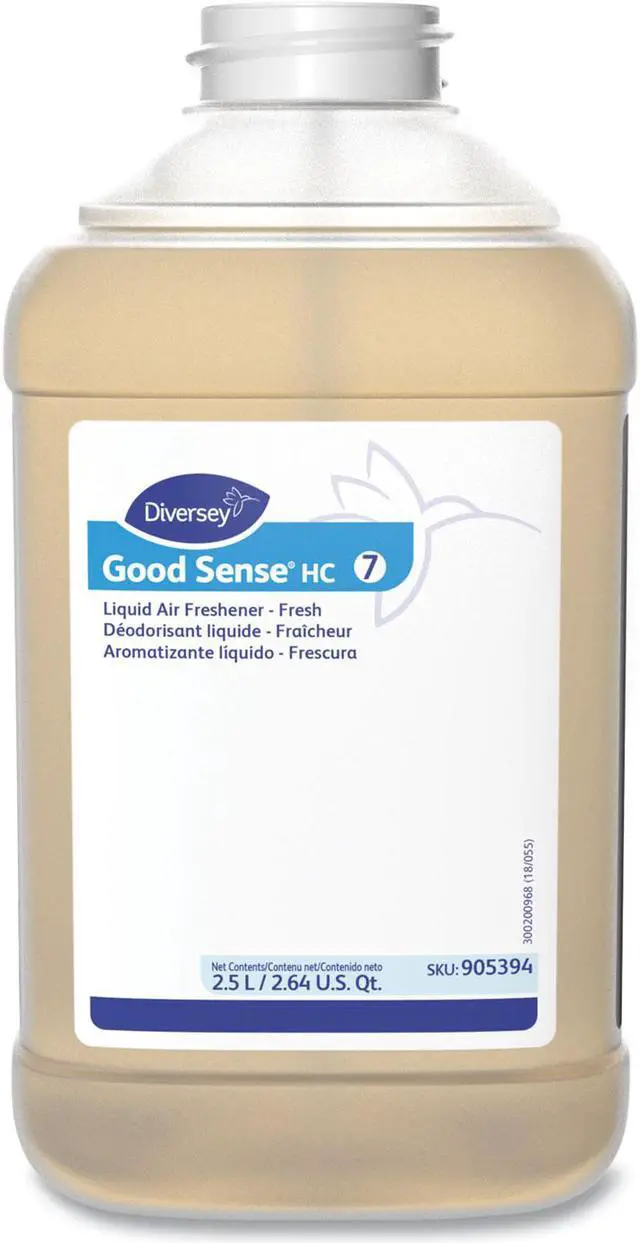 Odor Eliminator, Label Number 7, Label Color Coding Blue, Chemical Series Good Sense, Cleaner Form Liquid, Container Size 2.5 L, Container Type Bottle, Fits Dispenser Series J-Fill, NSF Rating Not Rated, pH Level 5.8, pH Value Neutral, Primary Chemical None, Recommended Dilution 1:90, Concentrated, Properties Butyl Free, Nonflammable, Flash Point 200 Degrees F, VOC Content 0 Percent, Fragrance Fresh, Standards TSCA, Surfaces for Use On Carpet, Package Quantity 2