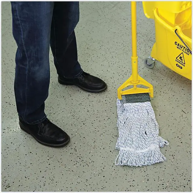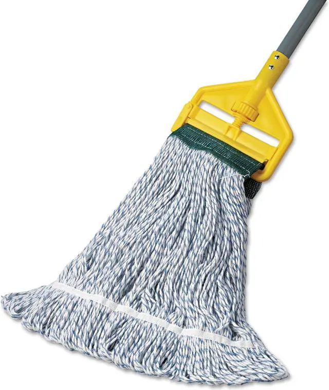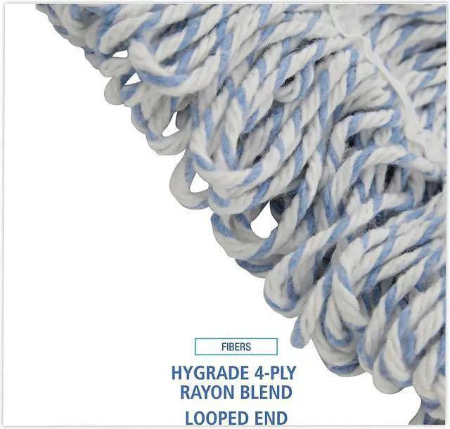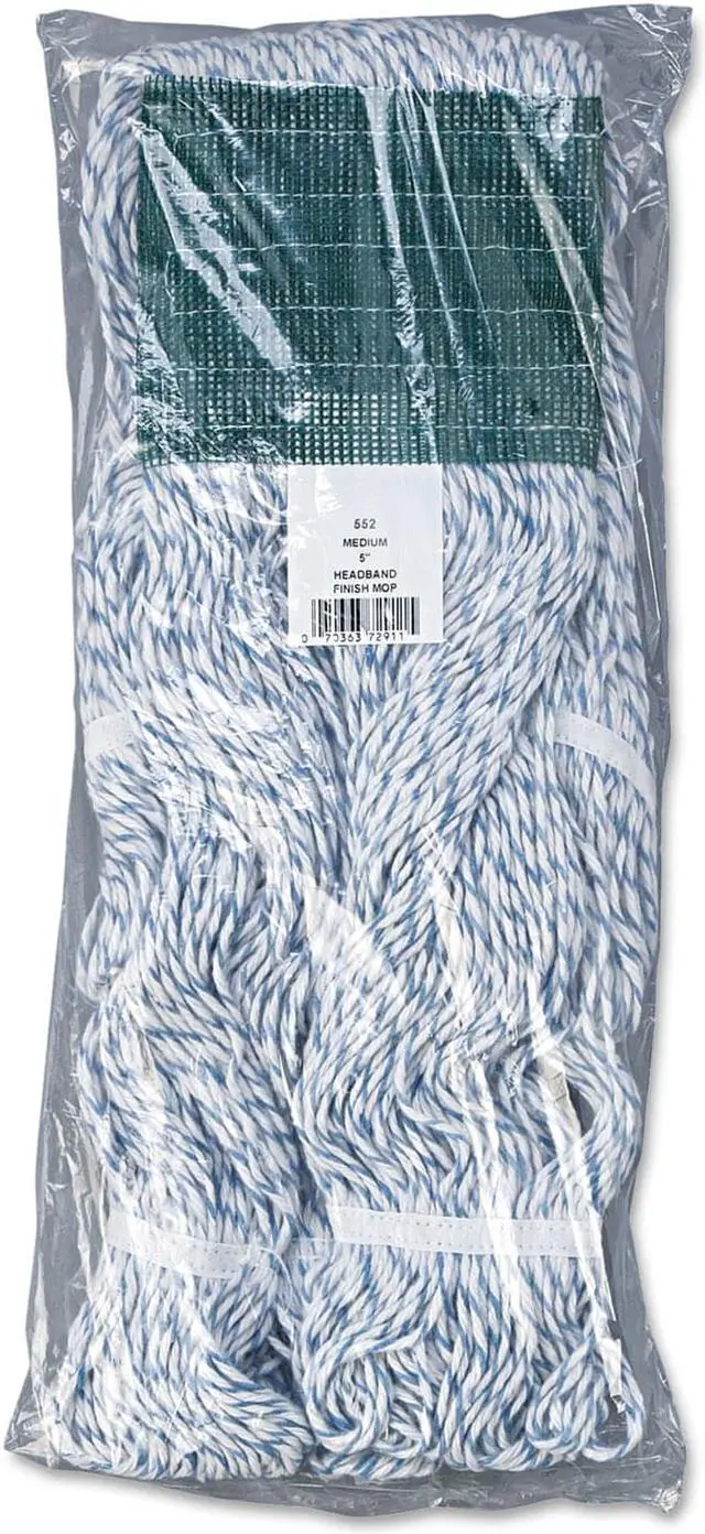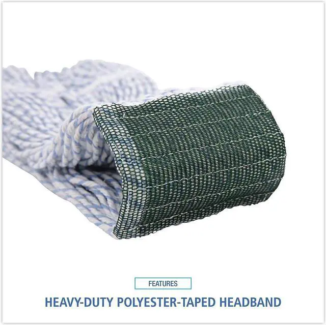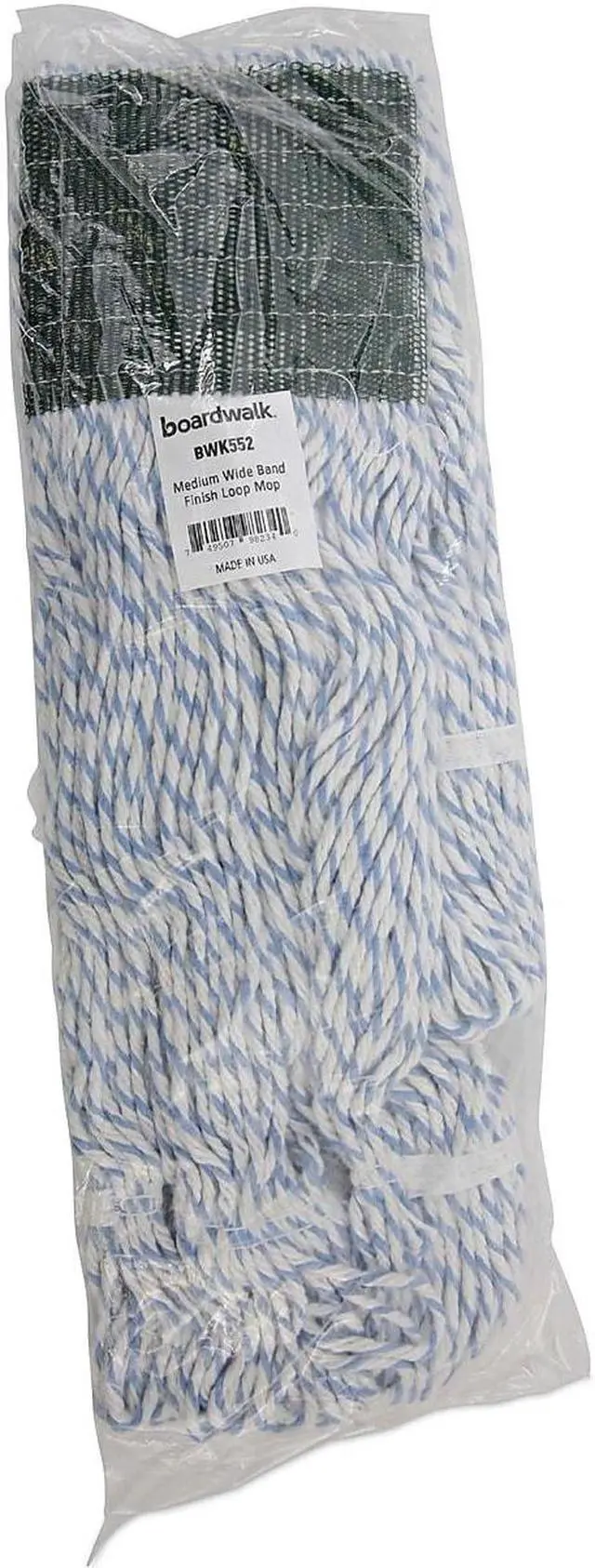 Boardwalk Floor Finish Mop Head is made from a high-grade, four-ply, rayon-blend which is designed to help you lay finish more evenly. Looped ends minimize unraveling and linting. Constructed to be more durable with a double-sewn tailband and polyester-tape headband. The mop heads are mildew and bacteria resistant. Designed for use with clamp and grip-style mop handles, which are sold separately. Vinyl mesh headband. Mop Head Type: Wet Mop; Application: Floor Maintenance; Mop Head Style: Looped End; Mop Head Size: Medium.
