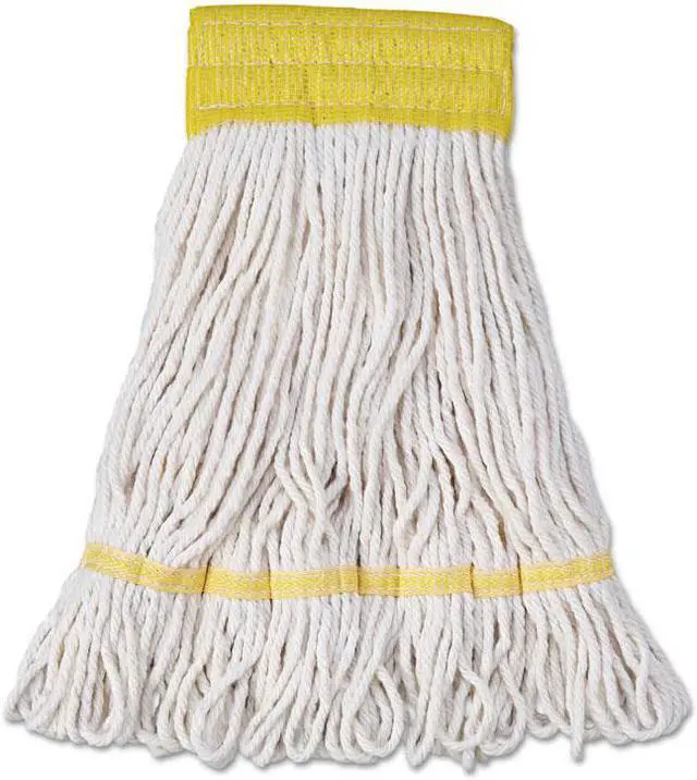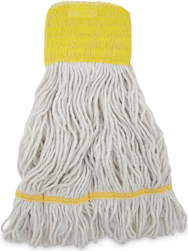 Boardwalk Super Loop Wet Mop Heads are created from premium-quality, four-ply cotton/synthetic yarn for maximum absorbency. The industrial strength mop head is designed for high-volume use. Each head absorbs up to seven times its own weight in liquid. Constructed to be more durable with heavy-duty, vinyl headbands. Machine washable. Launder in mesh bag. Use with clamp or spring grip-style handles, which are sold separately. 5" Headband. Mop Head Type: Wet Mop; Application: Floor Maintenance; Mop Head Style: Looped End; Mop Head Size: Small.