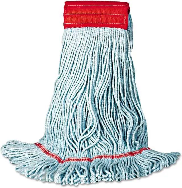 Durable, open-end spun cotton/rayon/synthetic blend 4-ply premium yarn. Looped-end design lints less, reduces fraying and unraveling. Double-sewn tailband prevents tangles and provides more floor coverage with each stroke. Launderable. Sturdy 5-inch mesh headband.