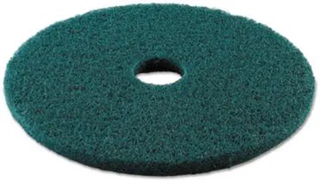 Extra heavy-duty scrubbing pad attaches to a rotary machine to remove dirt, spills, and scuffs. Easily scrub floors by mounting the pad onto the machine and let the powerful scrubbing pad go to work, removing heavy traffic and build-up with ease. The surface is cleaned, removed of debris, and ready for recoating if needed. For use with Rotary Machine Speed of 175 to 600 RPM. Color-coded for easy job identification. Floor Pads Application: Scrubbing; Diameter: 19"; Color(s): Green; Color Family: Green.