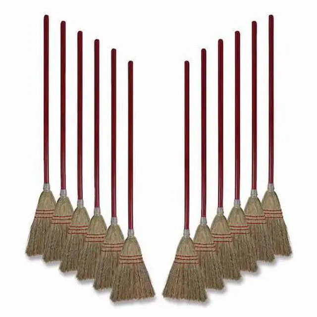 Boardwalk® Lobby/Toy Broom, Corn Fiber Bristles, 39" Wood Handle, Red/Yellow, 12/Carton