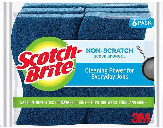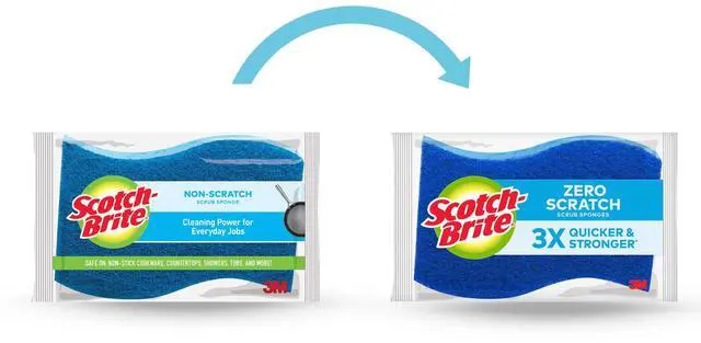 Scrub away everyday messes from non-stick cookware, countertops and more with Scotch-Brite Zero Scratch Scrub Sponges. These scrubber sponges are 3x quicker compared to leading temperature-reactive sponges [based on lab-developed studies measuring scouring ability after repeated use]. Use these non-scratch sponges for cleaning of everyday grease, grime and dirt on safe-to-use surfaces, such as non-stick cookware, countertops and tubs. Non-stick cookware benefits when using these kitchen sponges since they will not remove the protective coatings of your pots and pans. Even the messiest of dishes and surfaces will shine like new with a quick and easy scrub from these dish sponges. The scrubbing fibers of these sponges are made from 100% recycled content for a sustainable clean. To clean, put your cleaning sponge in the dishwasher top rack to wash and reuse it. Scotch-Brite gives you the power to clean up lifes everyday messes in the kitchen and beyond. From everyday jobs to cleaning hacks, you'll see why Scotch-Brite Brand is Americas #1 selling scrub sponge brand. Country of Origin: Canada.