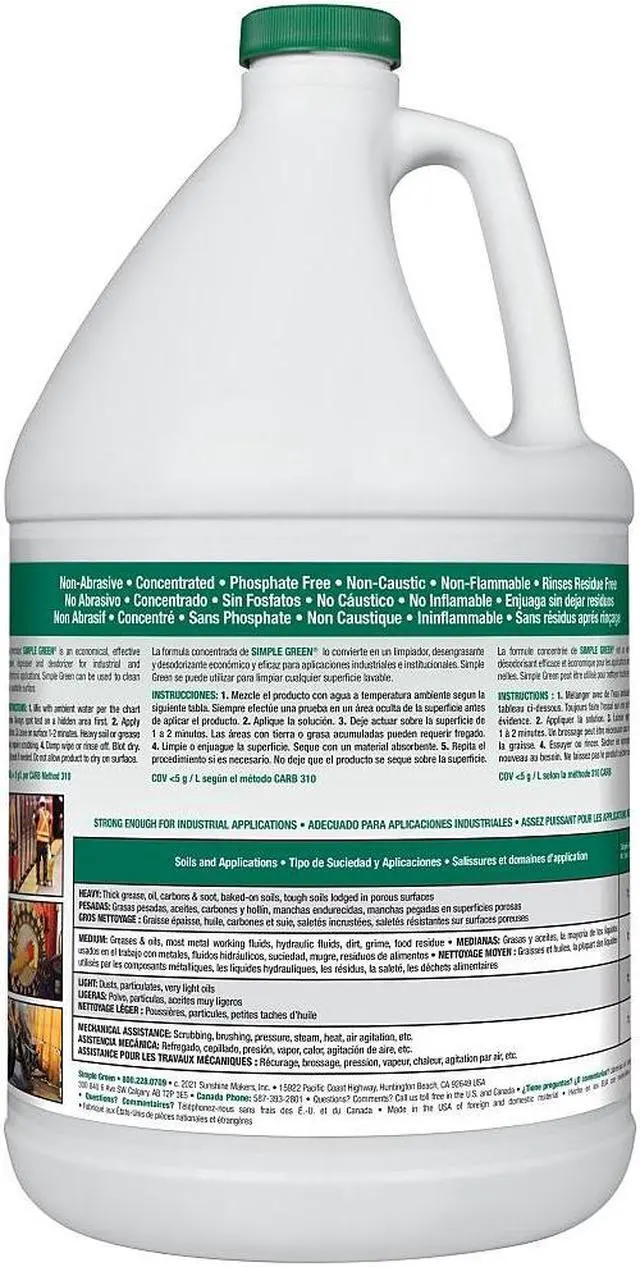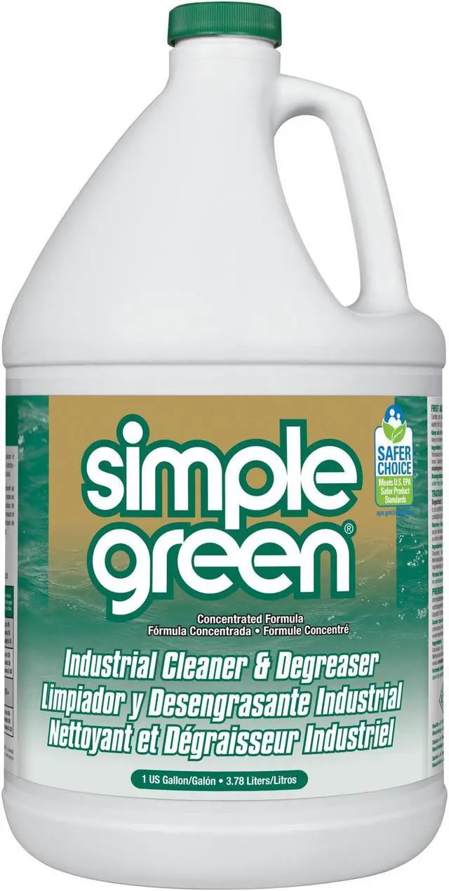 Mop or wipe up grease easily and leave surfaces clean and deodorized using this bleach-free degreaser. The detergent removes oils and other lubricant-based fluids effortlessly from all washable surfaces with its non-toxic, concentrated formula. This Simple Green industrial degreaser comes in a convenient 1-gallon bottle, which can be diluted with water for lighter sanitation needs.