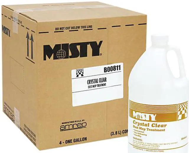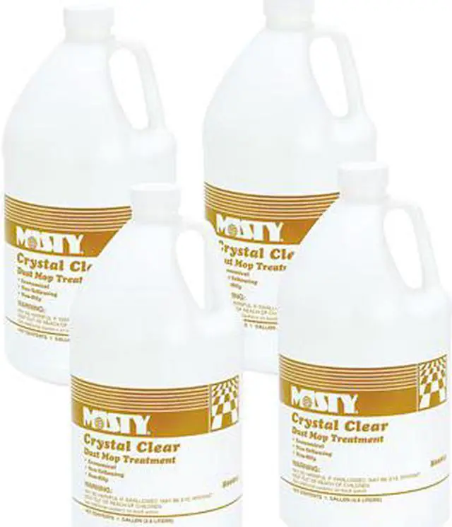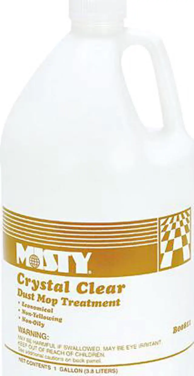 Crystal clear dust mop treatment is a dressing for dust mop heads to aid in the removal of dust, dirt, and other abrasive matter from floor surfaces. Mop heads treated with this compound act as a dust magnet to attract and hold particles until mop is cleaned or laundered. Treatment is non-oily and leaves a dry, protective, plasticized film on the surface of wood, asphalt, linoleum, vinyl, vinyl composition, rubber, terrazzo, concrete and gymnasium floors. Will not harm waxed or finished surfaces, and floors appear brighter and more lustrous.