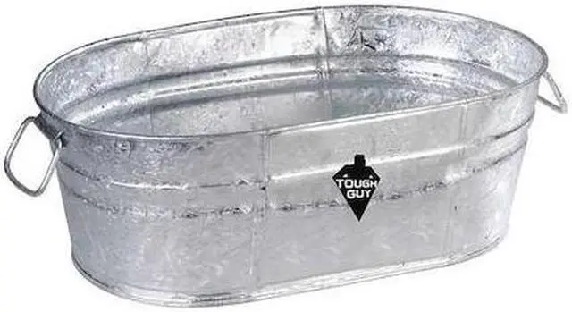 Utility Tub, Product Type Utility Tub, Capacity 2 gal, Material Galvanized Steel, Includes Graduation Markings No, Includes Handle Yes, Color Silver, Overall Width 10 in, Overall Length 15 in, Overall Depth 5 in, Color Coding System No, Graduation Scale Not Applicable, Shape Oval. This item has been restricted from sale in the following state (s): []