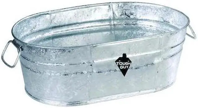 Utility Tub, Bucket Capacity 4 gal, Bucket/Pail Dia. 19 in, Bucket/Pail Length 22 in, Bucket/Pail Width 11 in, Color Coding System No, Color Silver, Material Galvanized Steel, Shape Oval. This item has been restricted from sale in the following state (s): []