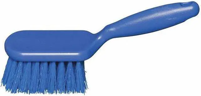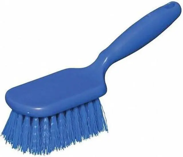 Scrub Brush, Bristle Firmness Stiff, Handle Style Angled, Bristle Material Polypropylene, Handle Material Plastic, Brush Length 4 1/4 in, Handle Length 5 1/2 in, Head Width 3 1/2 in, Bristle Color Blue, Overall Length 10 in, Chemical Resistant Yes, Bristle Length 1 3/4 in, Brush Type Scrub Brush, Handle Color Blue, Temperature Resistant Yes, FDA Compliant Yes, Acid Resistant Yes, Color Coding System Yes