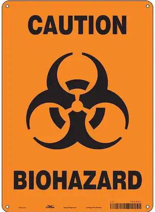 Biohazard Sign, Vertical Rectangle, Number of Printed Sides 1, English, Sign Format Other Format, Sign Legend Caution Biohazard, Sign Legend Background Color Orange, Sign Legend Style Symbol and Text