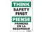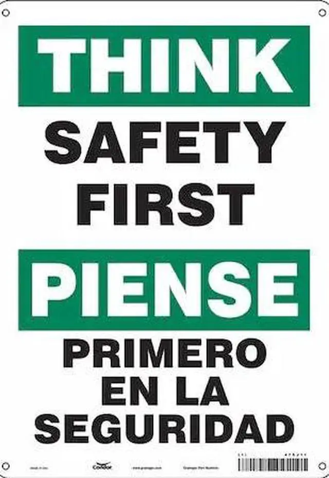 Safety Sign, Vertical Rectangle, Number of Printed Sides 1, English, Spanish, Sign Format Other Format, Sign Legend Safety First/Piense Primero En La Seguridad, Sign Legend Background Color Green, White, Sign Legend Style Text