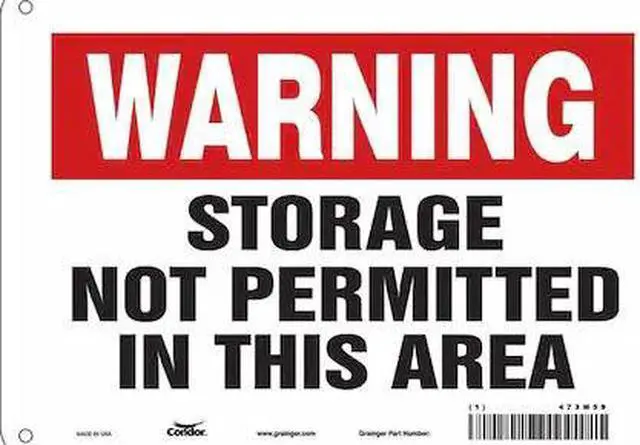 California Proposition 65: This product contains a chemical known to the State of California to cause birth defects or other reproductive harm. Safety Sign, Vertical Rectangle, Number of Printed Sides 1, English, Sign Legend Storage Not Permitted In This Area, Sign Legend Background Color Red, White, Sign Legend Style Text