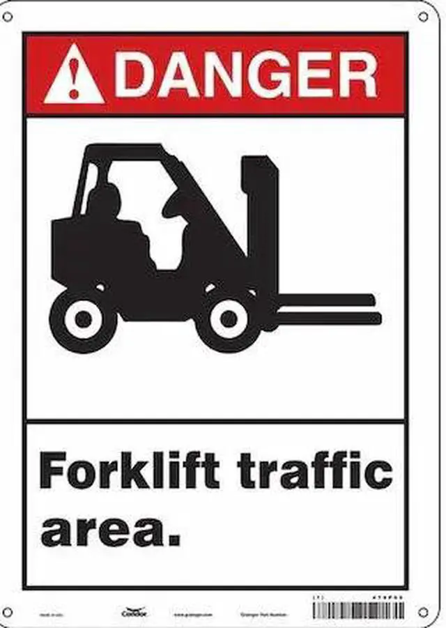 California Proposition 65: This product contains a chemical known to the State of California to cause birth defects or other reproductive harm. Safety Sign, Vertical Rectangle, Number of Printed Sides 1, English, Sign Format ANSI/OSHA Format, Sign Legend Forklift Traffic Area., Sign Legend Background Color White, Sign Legend Style Symbol and Text