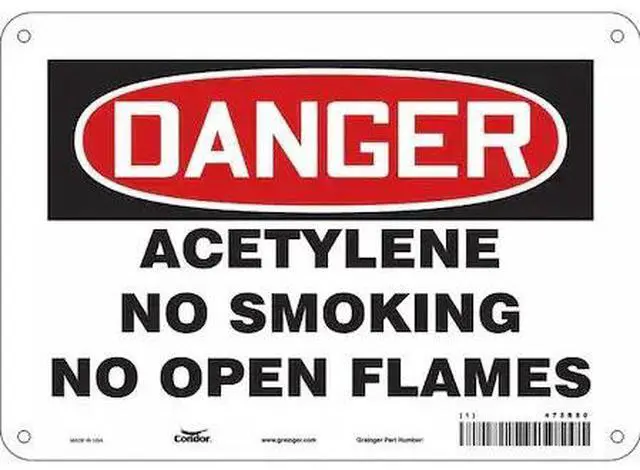 No Smoking Sign, Vertical Rectangle, Number of Printed Sides 1, English, Sign Format Traditional OSHA, Sign Legend Acetylene No Smoking No Open Flames, Sign Legend Background Color White, Sign Legend Style Text