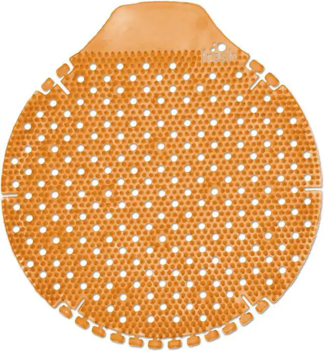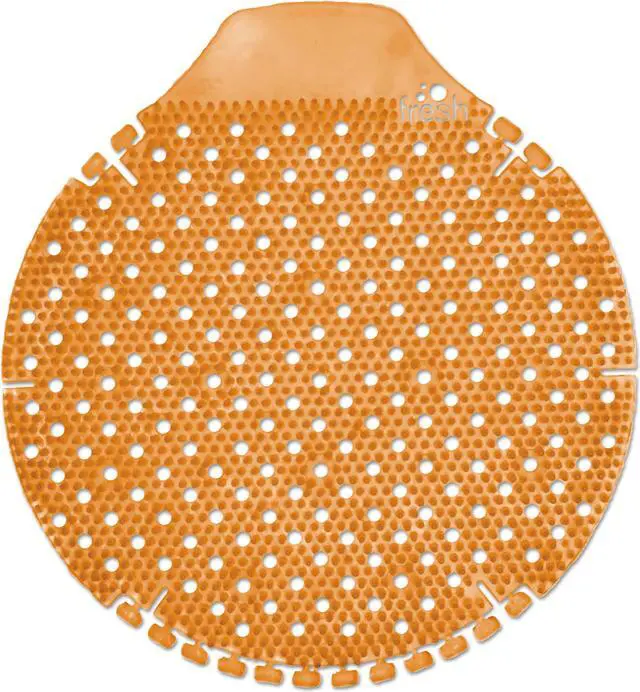 High-end, 60-day urinal screen. Containing five times more fragrance, the Tidal Wave will keep any restroom fresh. Contains beneficial bacteria, an elevated design and date tabs along the sides. Deodorizer Type: Urinal Screens; Scent: Mango; Capacity (Weight): 0.42 oz; Color(s): Orange.