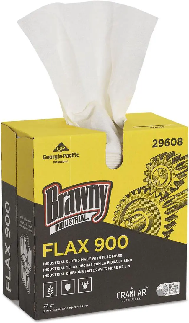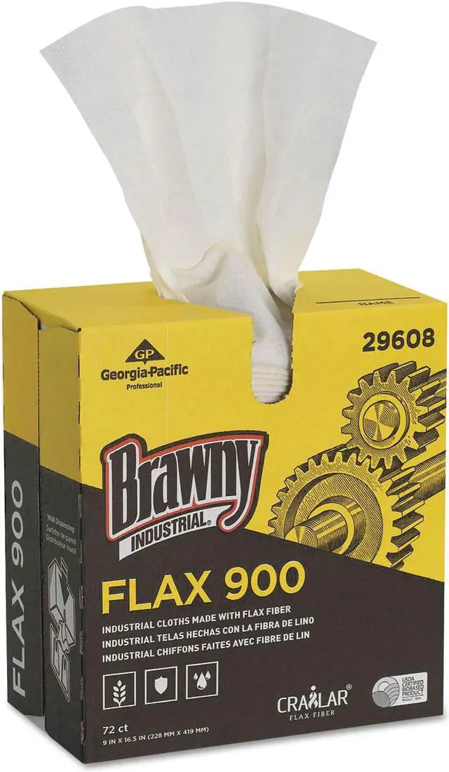 Choose a combination of softness and strength for your shop towels, with naturally strong flax fiber cloths that hold up even when using tough cleaning solvents. Naturally soft, with a cloth-like drape and feel, flax cloths are suitable for a wide variety of everyday cleaning tasks. Naturally absorbent cloths work quickly to absorb both oil and water. Flax-based cloths are free of harmful contaminants. Made from plant-based material - from the stalks of flax plants. FLAX 900 Heavy Duty Cloths. Towel/Wipe Type: Shop Towels; Application: Industrial; Material(s): Flax; Number of Plies: 1.