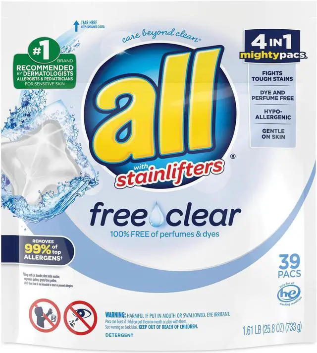 Conveniently pre-measured with concentrated detergent that is free of perfumes and clear of dyes to safely lift away tough dirt and stains. Simple to usejust drop in washing machine drum. Its hypoallergenic formula is specially designed for people with sensitive skin. Application: Laundry Detergent; Applicable Material: All Clothing; Dirt Types: Food Stains; Grass Stains; Grease; Oil-Based Soil; Organic Matter; Water-Based Soil; Scent: Unscented.