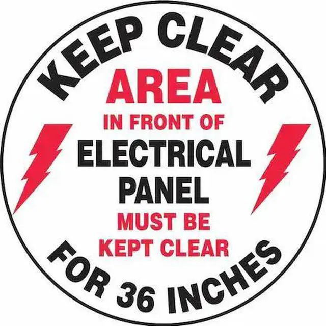 California Proposition 65: This product contains a chemical known to the State of California to cause birth defects or other reproductive harm. Slip-Gard Round Floor Sign, Circle, English, Sign Legend Keep Clear Area In Front Of Electrical Panel Must Be Kept Clear For 36 Inches