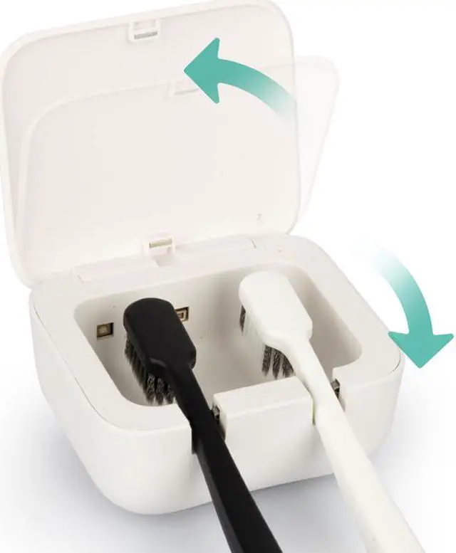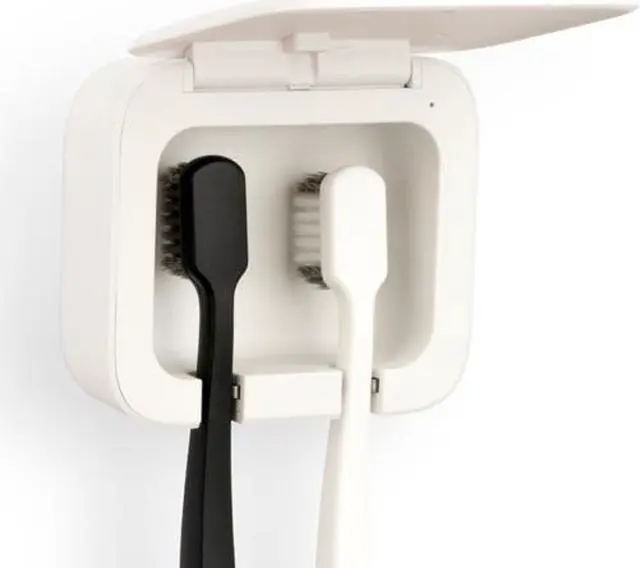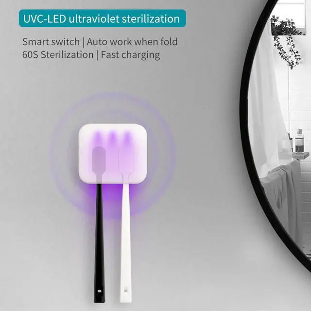 -Ultraviolet sterilization -The toothbrush disinfector provides you 60s ultraviolet sterilization -The toothbrush disinfector features in its sensor switch, which can automatically work when the cover is closed. -The toothbrush disinfector can be easily installed on wall by the base with back glue, which also can be easily detached for travel. -The toothbrush disinfector with the convenient toothbrush slot design can hold your toothbrush on wall stably and drain the extra water.