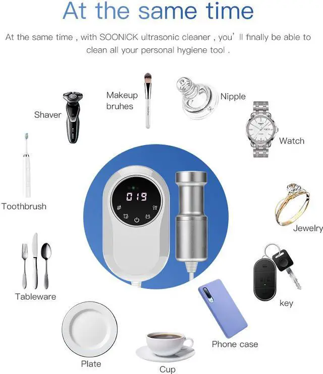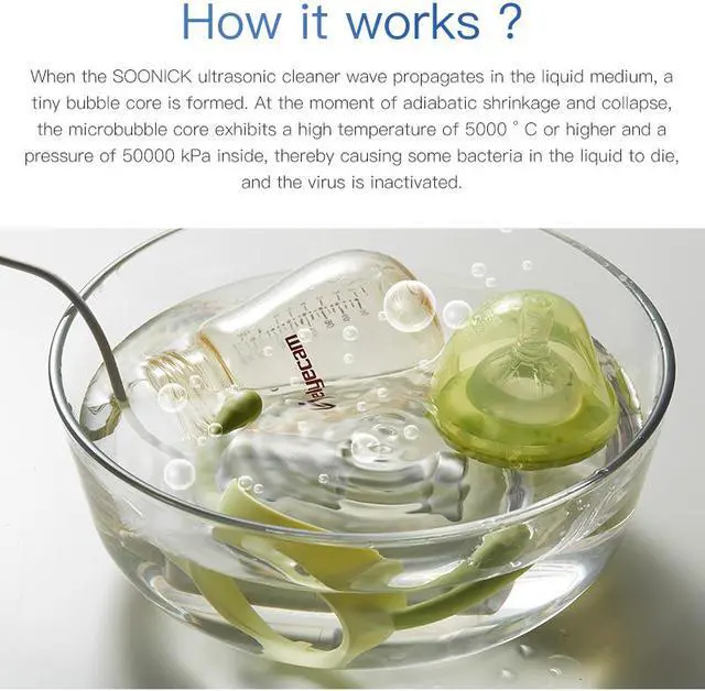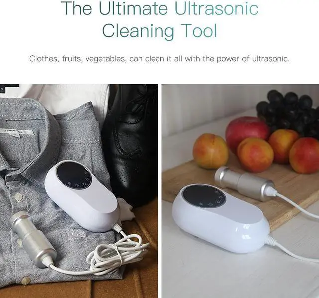 Portable Mini Ultrasonic Cleaner Advanced ultrasonic technology with hydro-electric motors cleans dirt, debris and chemicals at the microscopic level. Remove tough stains from underwear and effectively sanitize fruits/vegetables from chemicals and pesticides. it's an efficient "ultrasonic washing machine".