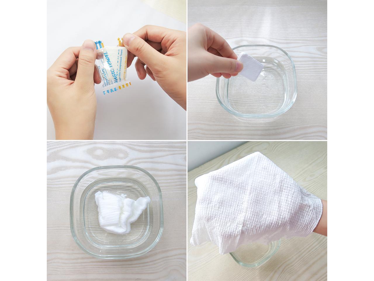 - -Easy to use: Just add water! the compressed towel will expand and unfold, will expand to 9.4''x 11.8'', then you can use it to clean the face, hands, etc.