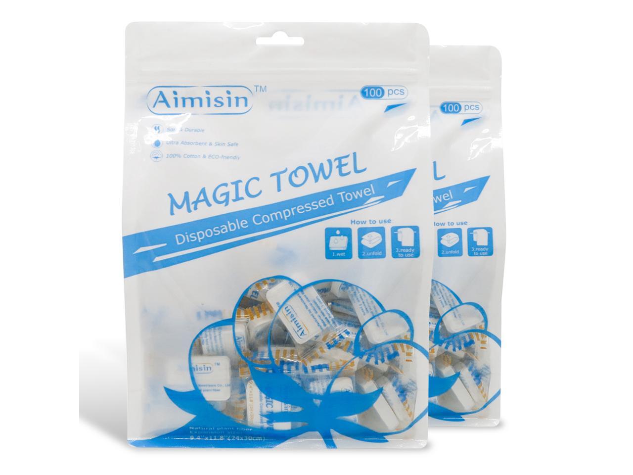 Aimisin Compressed Towels Disposable Soft Durable Towels 100% Cotton for Home Bathroom Travel Camping, 9.4''x11.8'', 2 Pack, 200 Pcs
