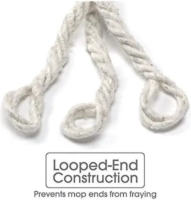 SIZE: This loop end mop is universal size, fit most of the loop end mop handles and most of the wringer basket. *****Double Looped-End construction keep mop ends from fraying, tail-band reduces tangling and makes cleaning more efficient.