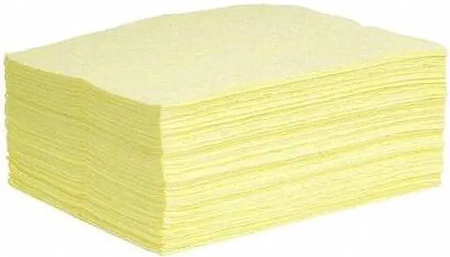Product Type Sorbent Pad, Fluids Absorbed Harsh Chemicals, For Use With Chemical or Metal Type Hazardous Materials, Size 15 in x 19 in, Volume Absorbed Per Pad 30 3/4 oz, Volume Absorbed per Pkg. 15 gal, Color/Pattern Yellow, Material Polypropylene, Number of Layers 2, Perforated Perforated, Perforated Size 7 1/2 in x 19 in, Package Quantity 100. This item has been restricted from sale in the following state (s): []