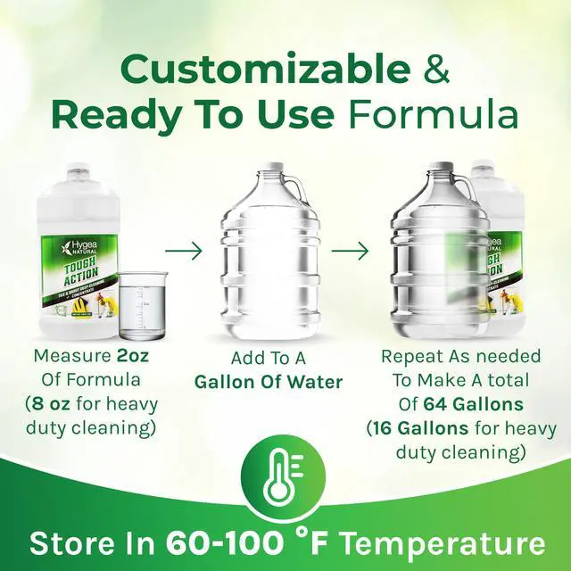 Meet the Hygea Natural Tough Action Deep Cleaning Combo Pack the ultimate solution for tackling the toughest cleaning jobs around your home. This pack includes a ready-to-use 24 oz spray bottle and a 1-gallon refill available in both ready-to-use and concentrated formulas.