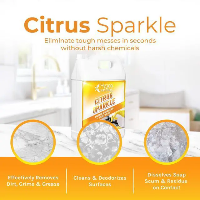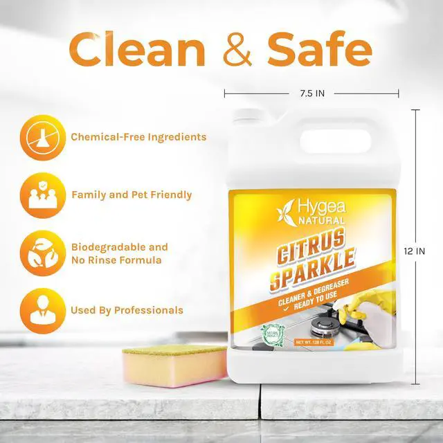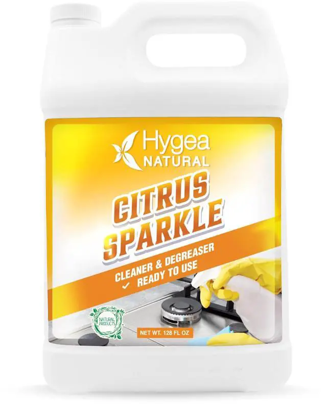 The Citrus Sparkle Degreaser Ready-to-Use by Hygea Natural eliminates tough grease and grime from various surfaces. Effortlessly remove spilled food and other stubborn stains with just the swipe of a damp cloth. Clean your kitchen countertops, stovetops, and even outdoor grills with the incredible power of citrus. Tackle even the toughest cleaning jobs without exposing yourself, your family, or the environment to harsh chemicals.