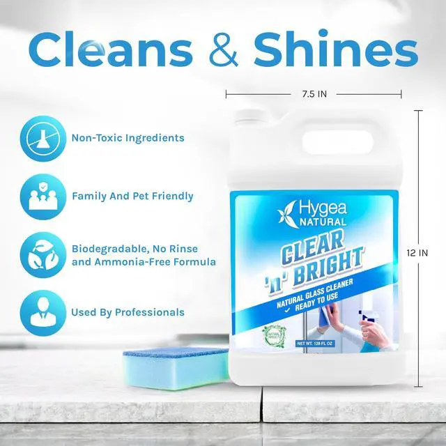 Clear n Bright's streak-free shine and no-rinse formula won't leave you with any residue or film. Our naturally derived ingredients work to remove silvery residue and protect the shine that other glass cleaners can't.