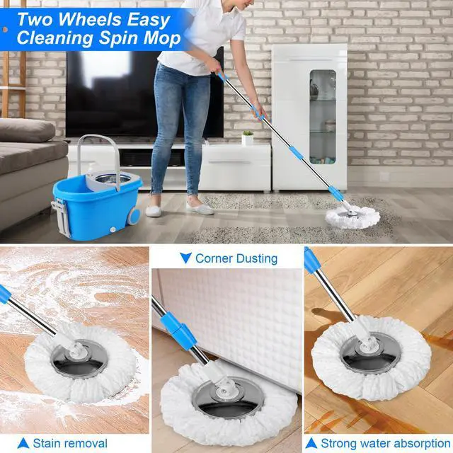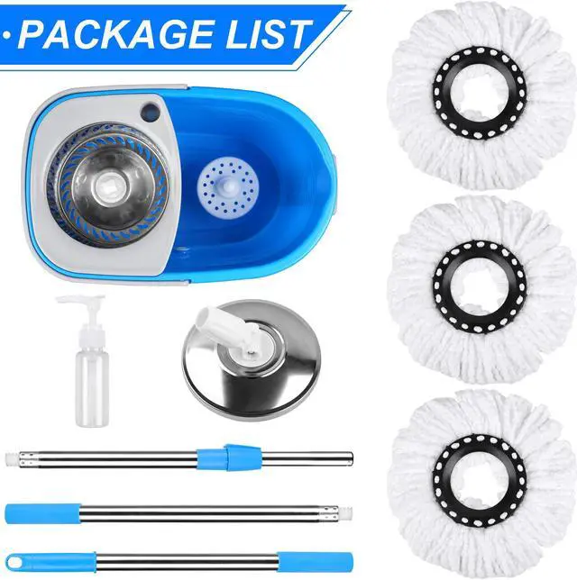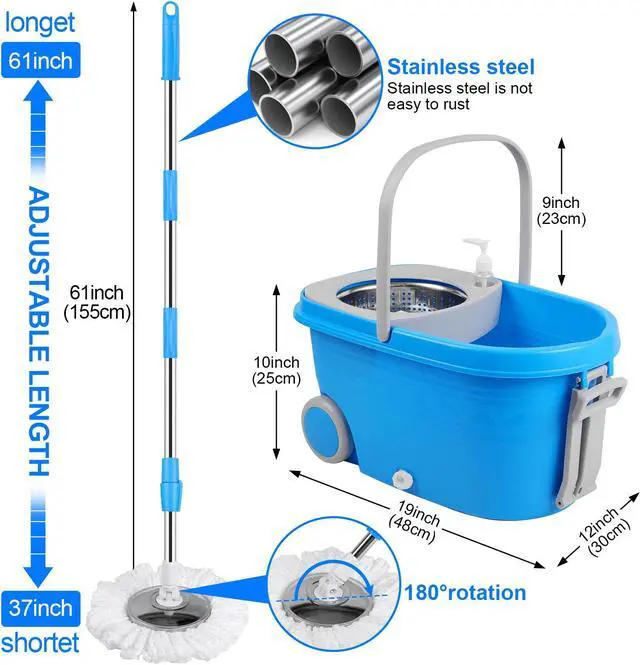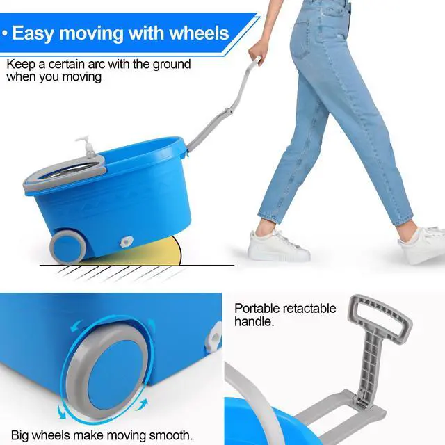 Microfiber Mop Set: includes 1 new mop bucket, 1 retractable mop arm, 1 soap pump and 3 microfiber mop heads. Two wheels and a retractable mop holder make moving the mop more comfortable and convenient. The microfiber mop heads can better clean pet hair, wood floors and more without scratching any type of floor. The upgraded product offers more convenience in all aspects, customer satisfaction is our goal.