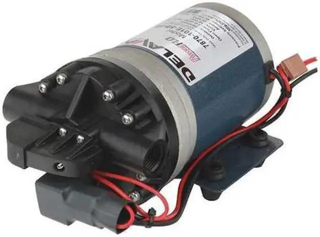 Diaphragm Pump, Operating Pressure (Maximum) 60 psi, Diaphragm Chamber Design 5, Diaphragm Material Santoprene, Check Valve Material Santoprene, Discharge Connection Size 1/2 in, Discharge Connection Type FNPT, Flow Rate (Maximum) 7 gpm, Housing Material Polypropylene, Intake Connection Size 1/2 in, Intake Connection Type FNPT, Nameplate Voltage 12V DC, Priming Self-Priming, Pump Operation Type Electric, Pressure Switch Yes, Standards NSF Certified, Flow Rate @ 20 psi 6.3 gpm, Current 30 A. This item has been restricted from sale in the following state (s): []