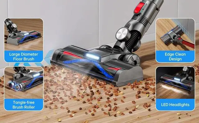 VERSATILE DESIGN: Converts between stick and handheld modes, featuring LED headlights and telescopic tube for flexible cleaning reach