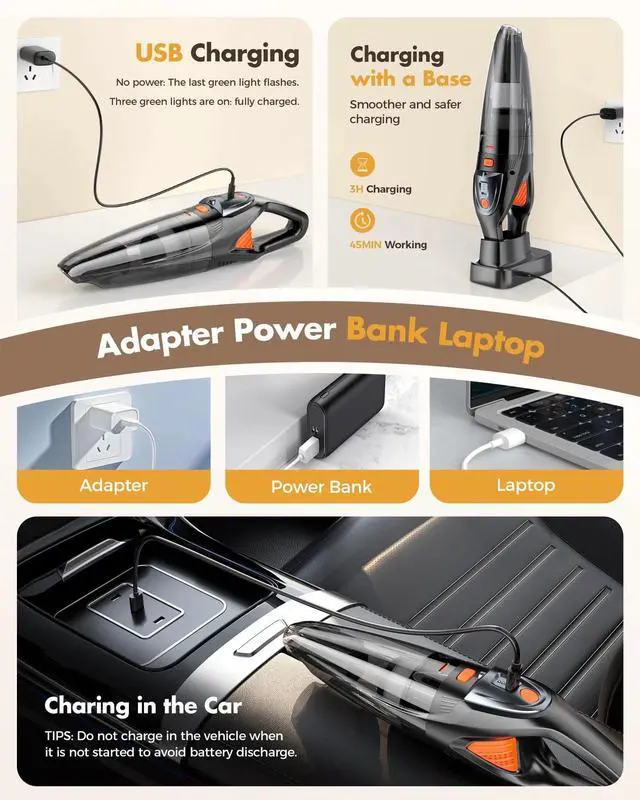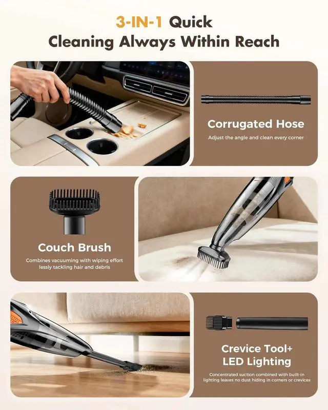 Handheld Vacuum Cordless 25000PA Powerful Suction, Portable Car Vacuum, 3 in ...