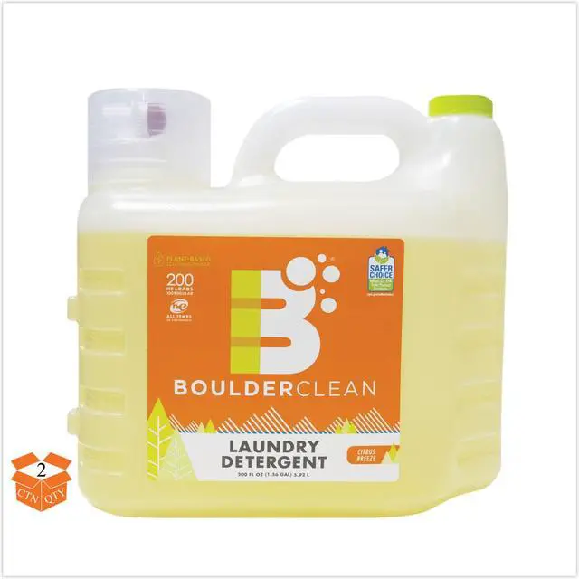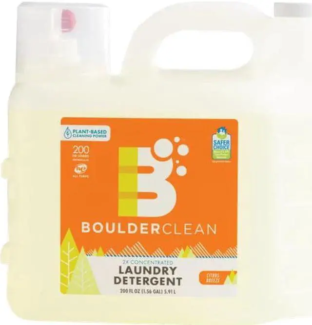 Life is complicated. Laundry shouldnt be. Plant power plus enzymes provide exceptional stain-lifting, deep-cleaning power for all of your favorite things. Boulder Clean Laundry Detergent loves colors, whites and all fabrics. It works well in standard and high efficiency washing machines, and in hot and cold temperatures. Convenient pump dispenser. Yields 200 HE loads and 100 regular loads. Meets EPAs Safer Choice standards. Washed 200 HE loads. Application: Laundry; Applicable Material: All Washable Fabrics; Chemical Compound: Purified Water; Sodium Laureth Sulfate (Plant-Derived Cleaning Agents); Ethoxylated Alcohol C12-15 (Plant-Derived Cleaning Agents); Sodium Chloride (Mineral-Based Thickener); Sodium Tetraborate Decahydrate (Mineral-Based Water Softener and Degreaser); Citric Acid (Plant-Derived pH Modifier); Methylisothiazolinone (Preservative); Cold Pressed Orange Oil {Limonene} (Degreaser); Protease (Plant-Derived Enzymatic Stain Remover); Sodium Polyaspartate (Plant-Derived Soil Suspending Agent); Dirt Types: Food; Food Grease; Grass stains; Household Dirt; Oils.