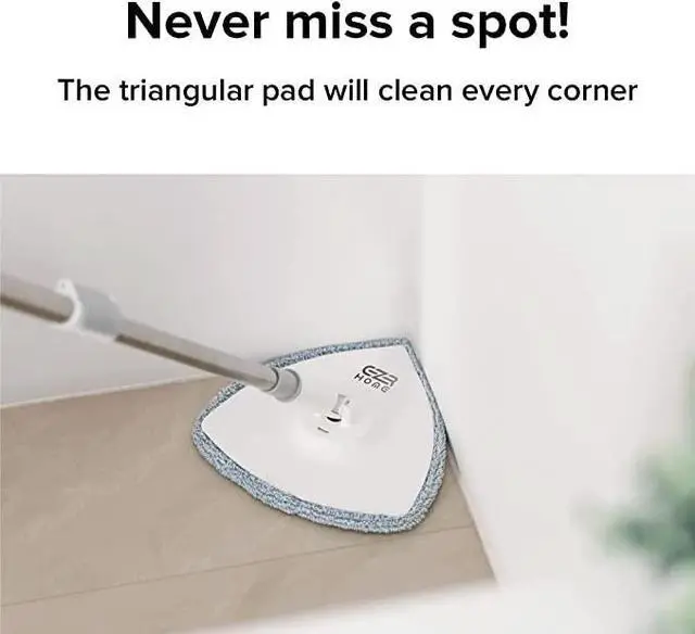 Handle: The handle mop set with bucket is made of stainless steel. The 360° spin mop system with round and triangular mop head allows easy cleaning of the underside, corners, and spaces of furniture. Spin Mop and