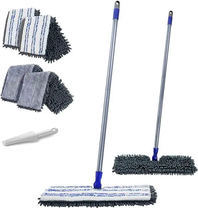 Wet Dry 2 in 1 Brilliant Using: The gray chenille mop pad is very absorbent. It can easily pick up and fix dirt, dust, pet hair, debris, etc. Ideal wooden floor mop for pet owners and families with children. And microfiber mop pads to attract dust and make the floor dry faster. Suitable for different types of hard floors, such as hardwood floors, laminate, vinyl, ceramic, tile floors, etc.