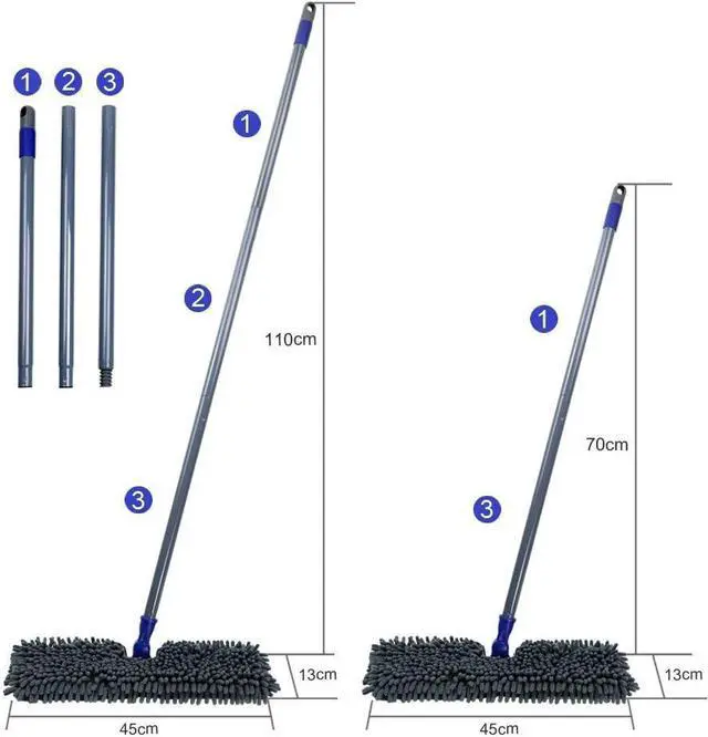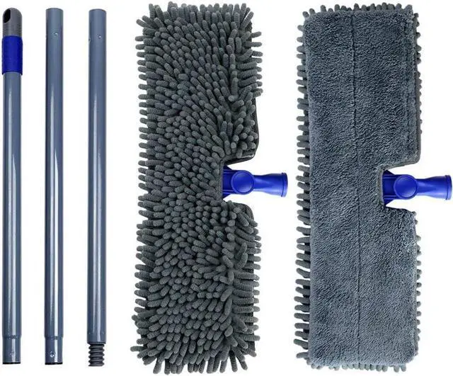 Perfect Performance: Ideal for New Year gifts! Our dust mop is more effective when used on both sides-chenille pad side & microfiber pad side. The 360 degree hardwood floor mop easily flops from the one side to another side while you are dusting the floor as needed. The microfiber mop fit absolutely everywhere, perfectly around furniture and under cabinets. The 16.8 inch wide mop head makes the cleaning faster and save half of the time than the traditional mop.