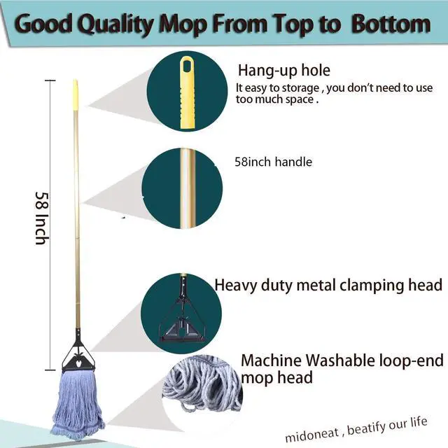 [Package Contents] Midoneat commercial mop has loop-end string. The package contains 2 packs of mops, more economcal.