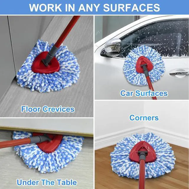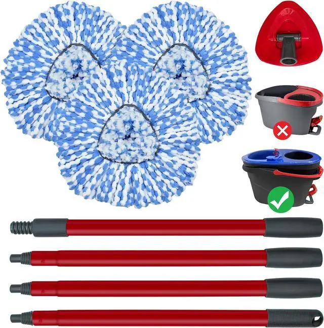 COMPATIBLITY: The spin mop replace heads, mop handle and mop base set is compatible with O-Ceda RinseClean Microfiber Spin Mop.