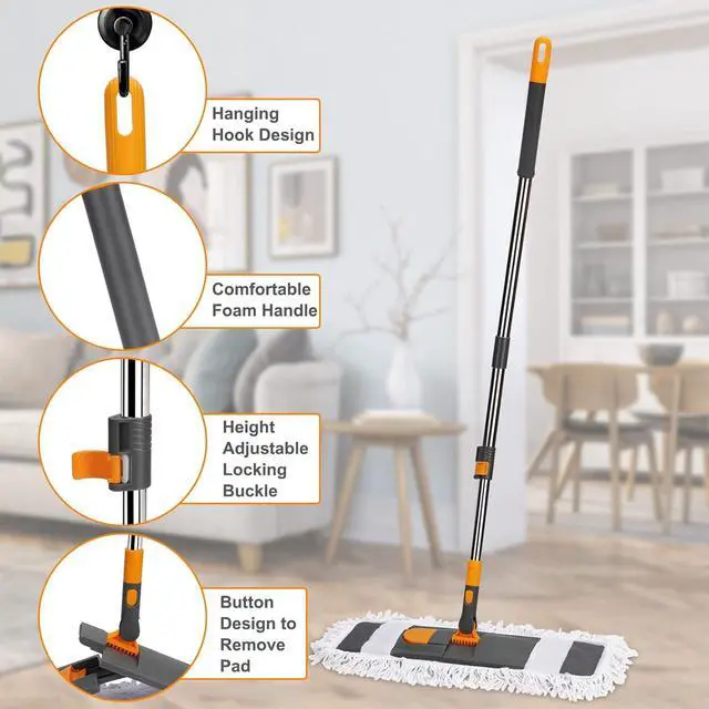 Wet and Dry Mop: This wet mop is a ideal for floor cleaning, home, kitchen, bathroom restaurant, hospital and office, suitable for all types of floors, such as hardwood, laminate, vinyl, marble, wooden, tile, glass and more. The dry dust mop is perfect for cleaning dirt, dust and pet hair.