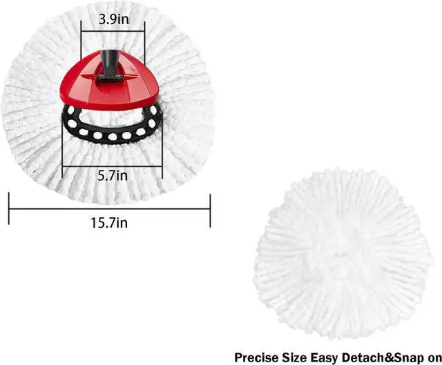 EASY TO INSTALL: With a simple snap-fit installation, the dimensions are 3.9 " in diameter and 5.7 " in diameter on the outer triangular side, our special design gives you more stability when installing and cleaning, please note that the mop head is not compatible with the 2-tank system, Fits perfectly with 1 can mop system.