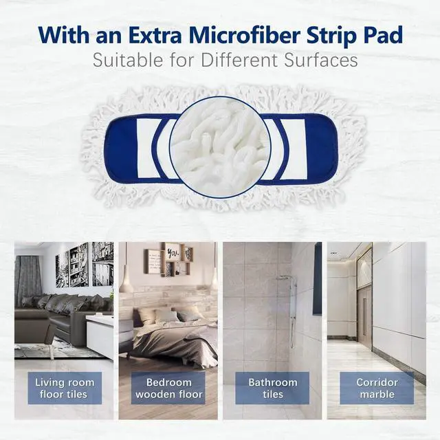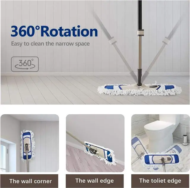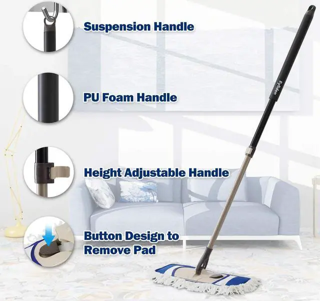 Wet & Dry Dust MopThe Eyliden push dust mop can easily deal with dead angles, pet hair, dust and dirt, and can be used for wet or dry floor cleaning. Longer length durable handle. With dry mode to dust or sweep, wet for mopping and scrubbing Hardwood, Tile, Laminate, Vinyl, Wood. Perfect mop for cleaning companies or home cleaning.